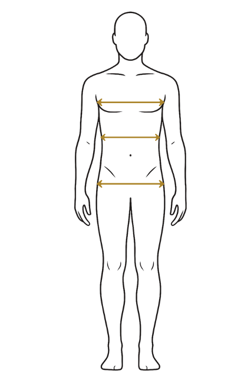 Zmierz obwód klatki piersiowej w najszerszym miejscu, pod pachami, trzymając miarę poziomo i równolegle do podłoża.